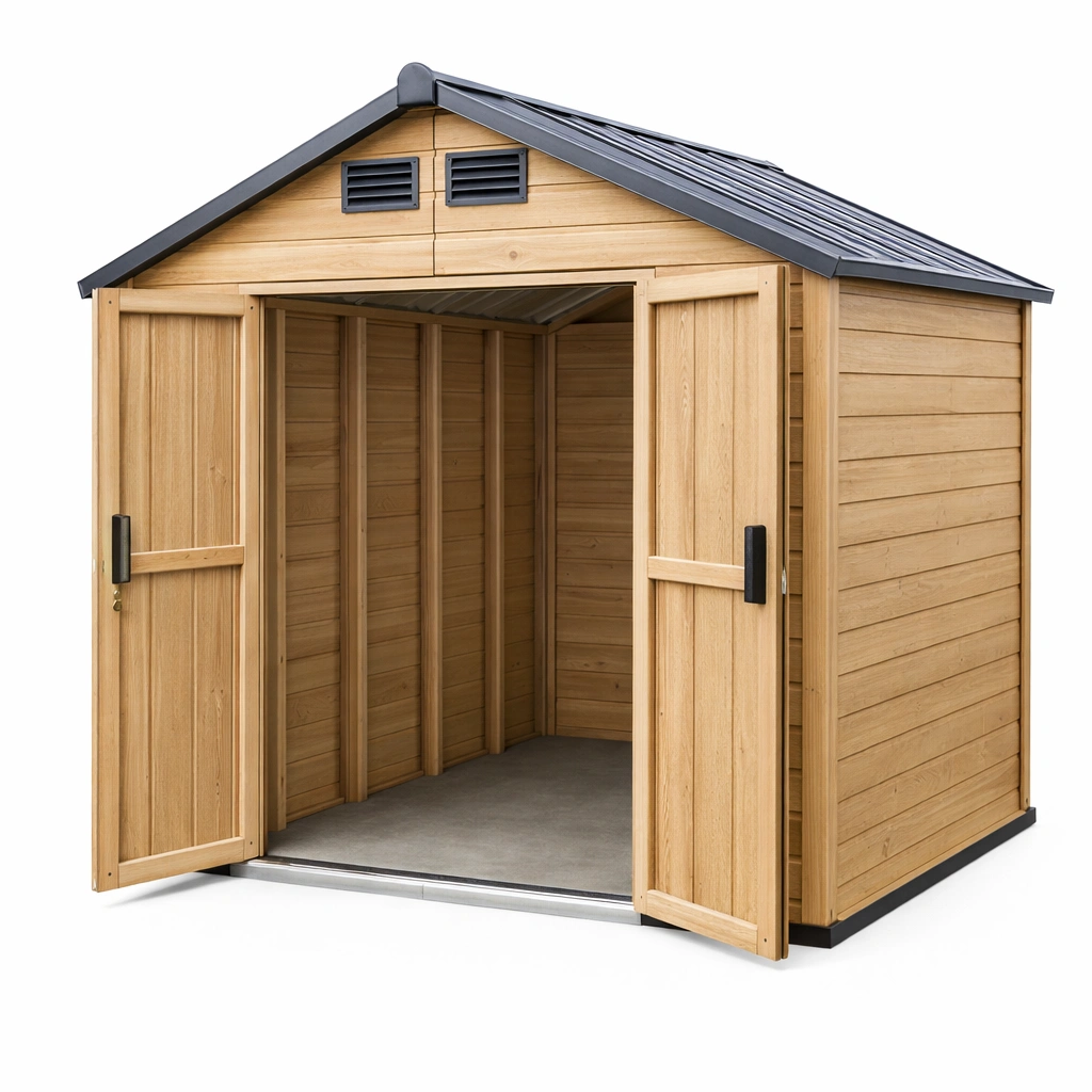 Gartenhaus Kunststoff Holzoptik mit 2 Türen 196x188x223 cm